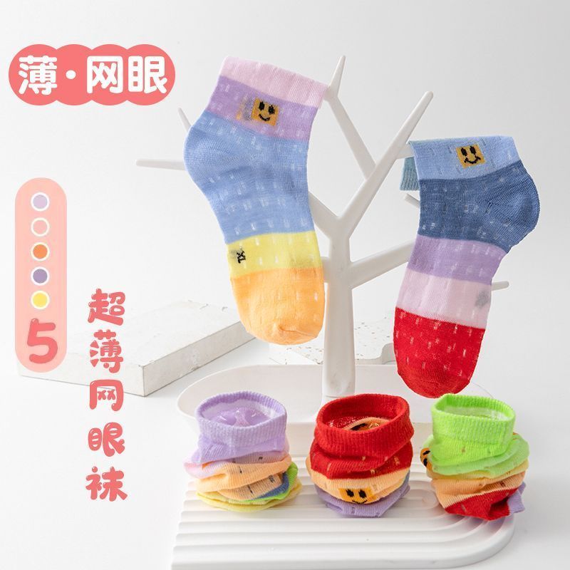 جوارب أطفال صيفية، مصنوعة من القطن، تصميم شبكي، مناسبة للطلاب