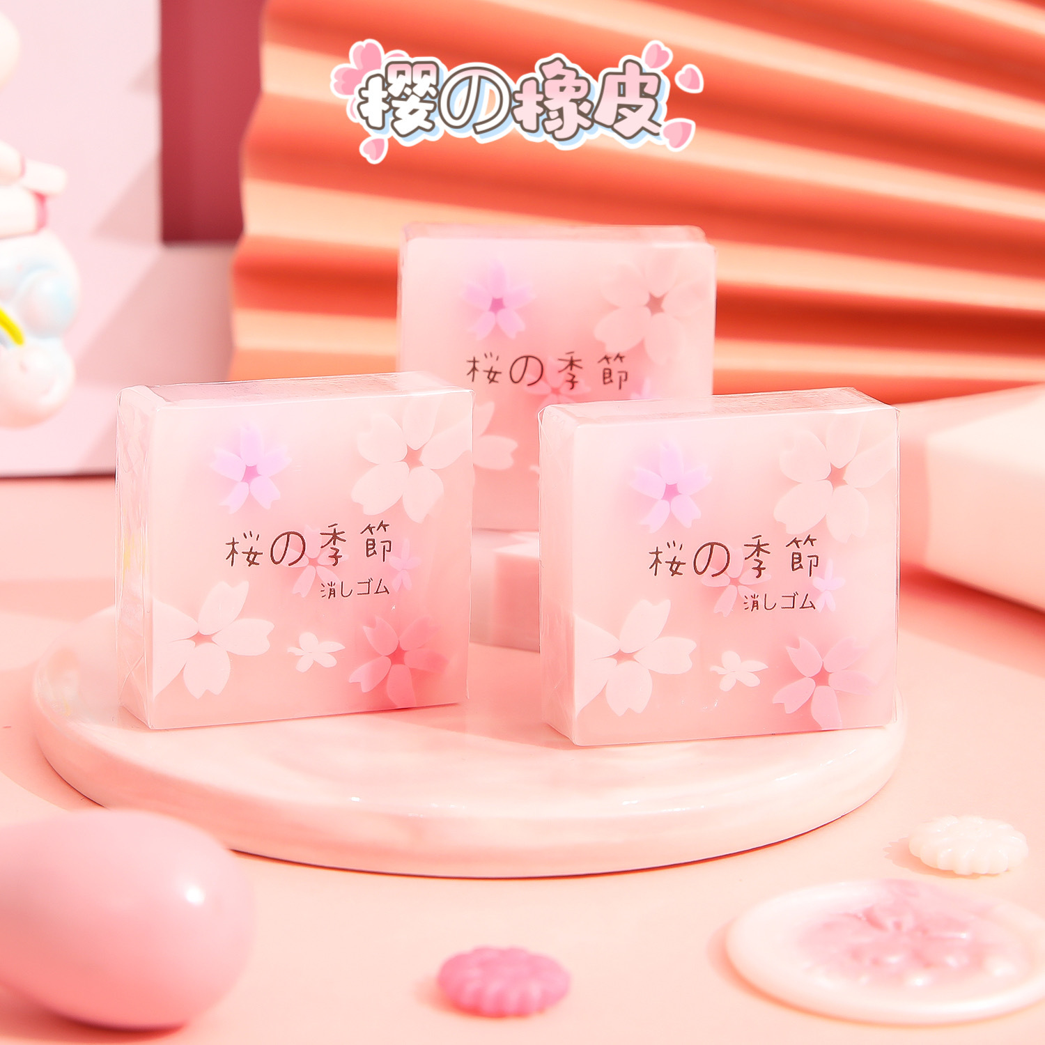 ممحاة ملونة على شكل زهور الكرز، شفافة، عالية الجودة، للطلاب