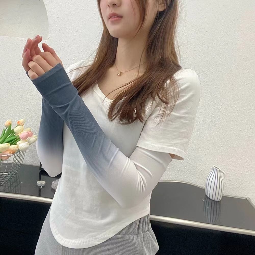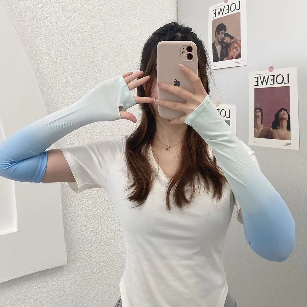 2024 New Gradient Women's Sun Protection Ice Silk Arm Sleeves for Driving and Cycling quantity