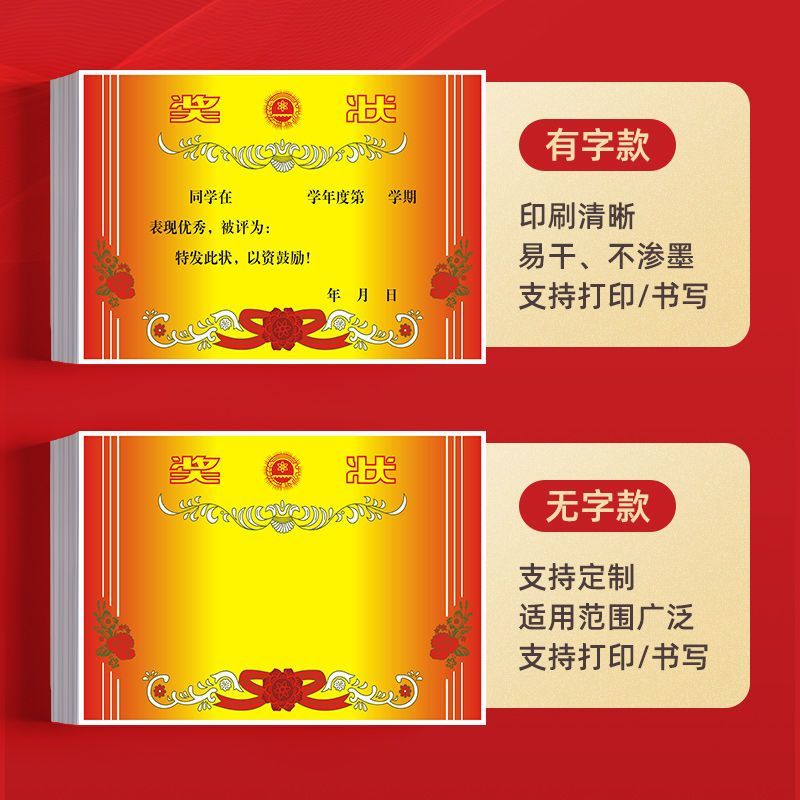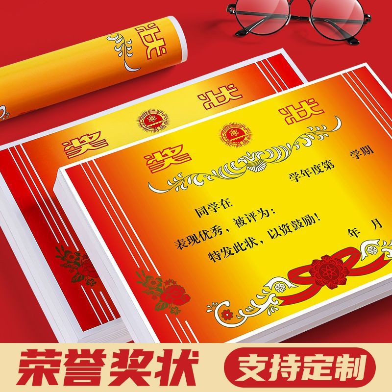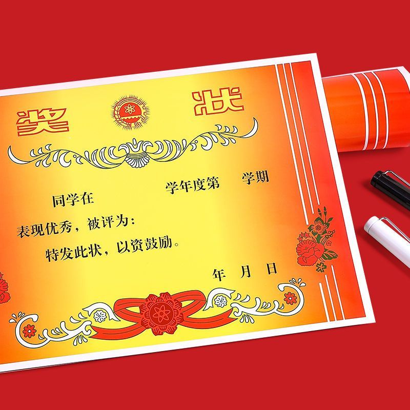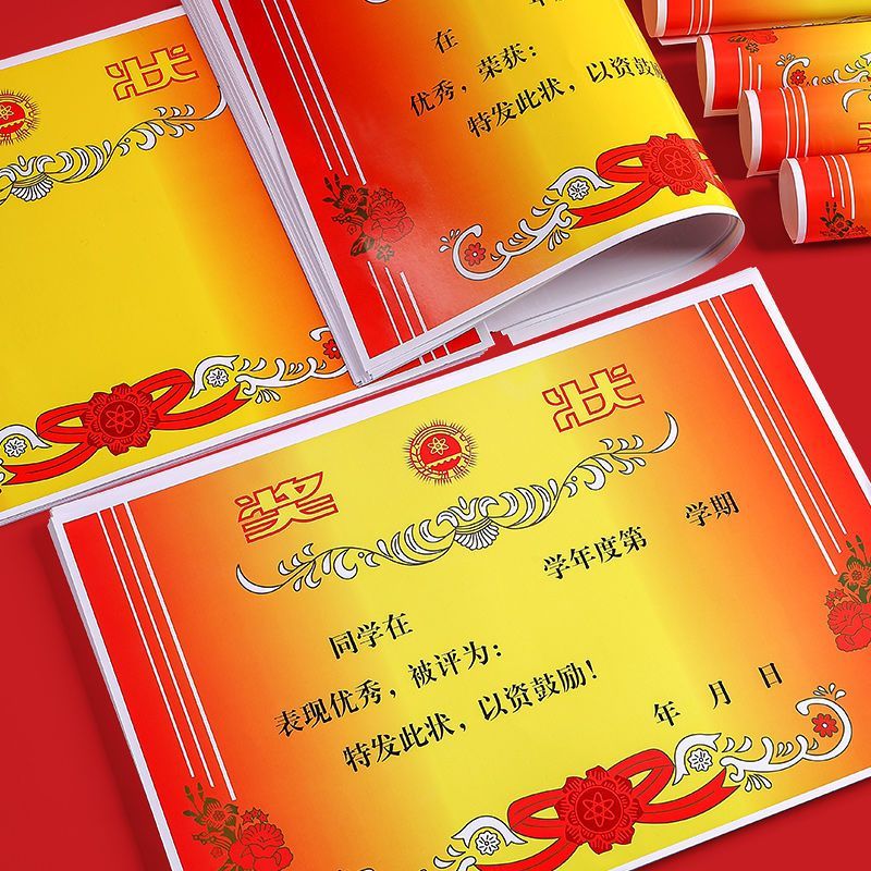 5 Sheets A4 Red Flower Double-Sided Award Certificate for Students quantity