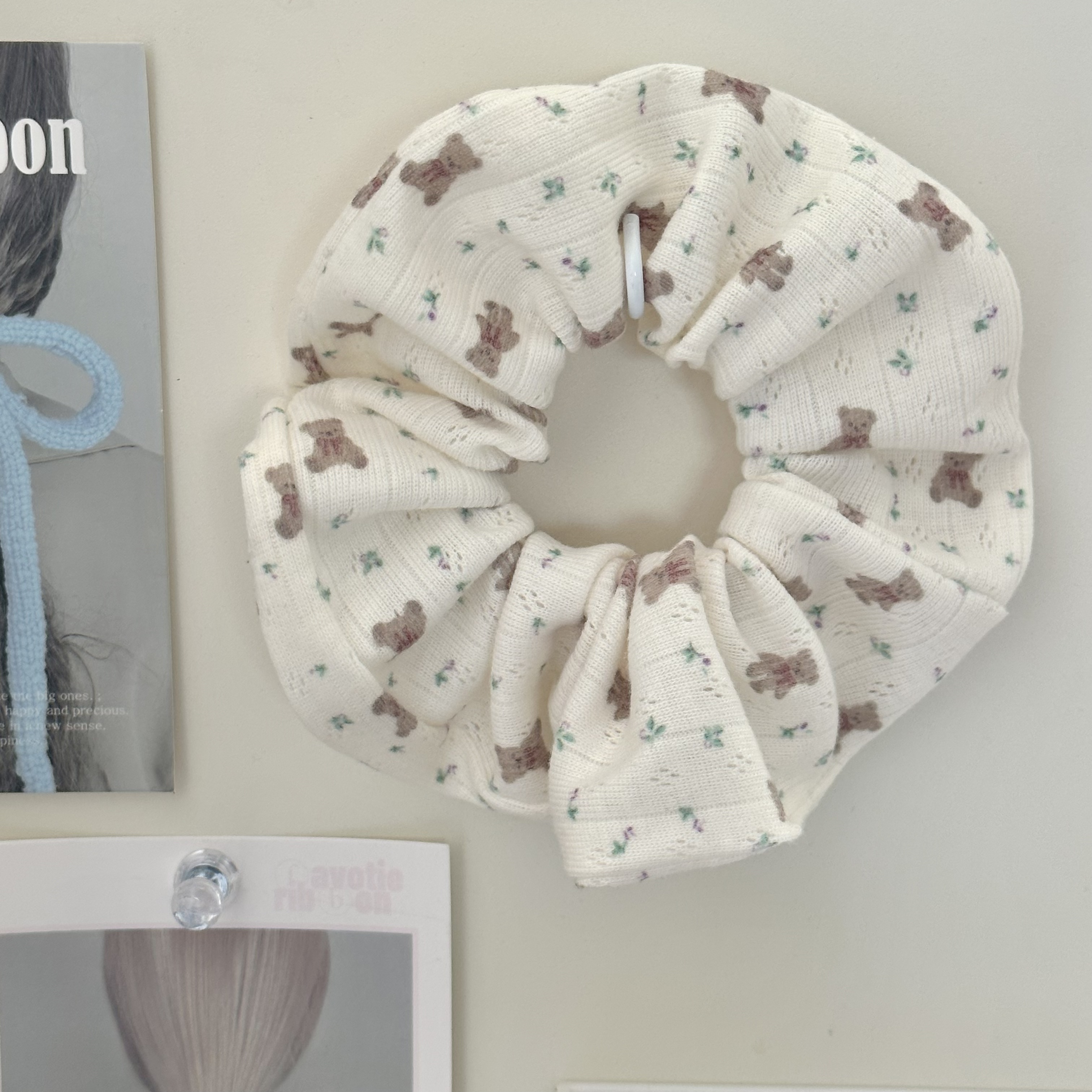 A Bag of Stars Cute Bear American Retro BM Large Intestine Hair Tie Same Style Floral Check Hair Accessories for Women Simple quantity
