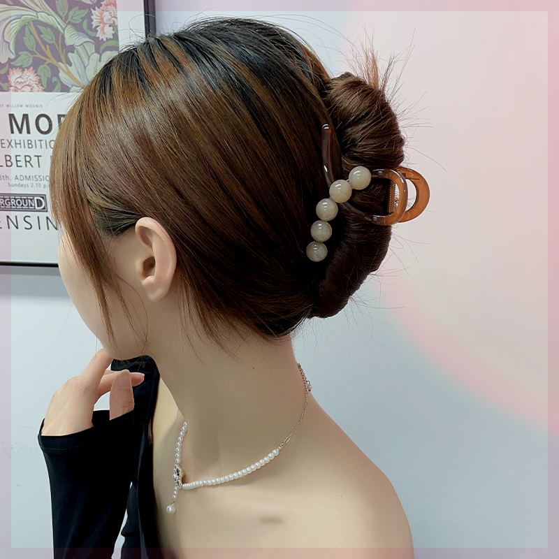 Acetate Brown Hair Clip, Light Pink Round Bead Ombre Hairpin, Elegant and Versatile Shark Clip quantity