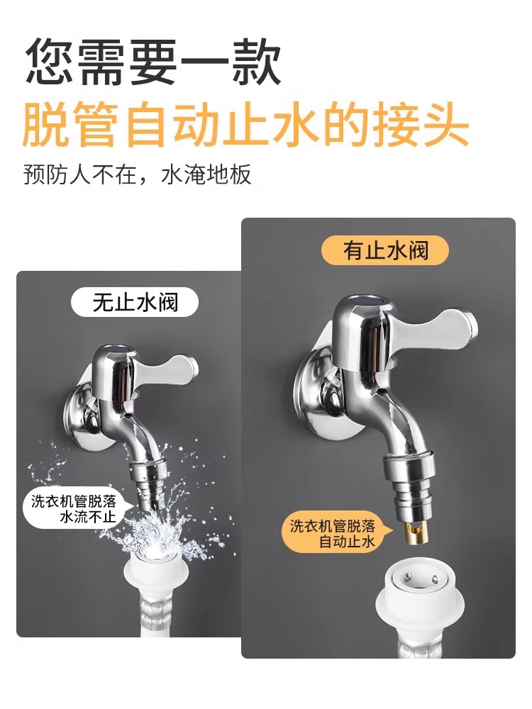 All-Copper Washing Machine Faucet Automatic Stop Valve Special Buckle to Prevent Falling Off Water Nozzle Connector quantity