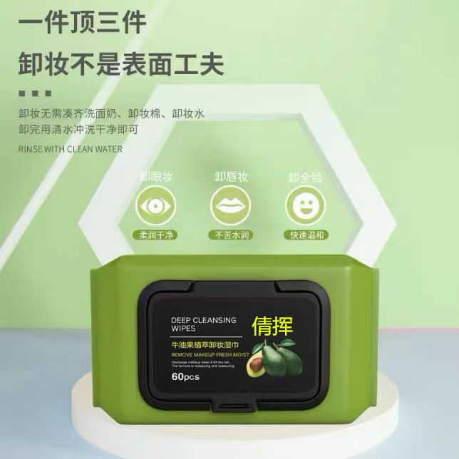 Avocado Makeup Remover Wipes Wet Wipes Deep Cleansing Gentle Face Eye Lip Makeup Remover quantity