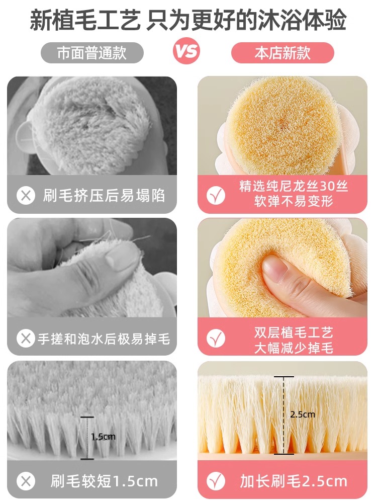 Bath Brush Back Scrubber Long Handle Soft Brush Double-Sided Shower Brush Exfoliating Dust Removing Bath Brush Back Tool quantity