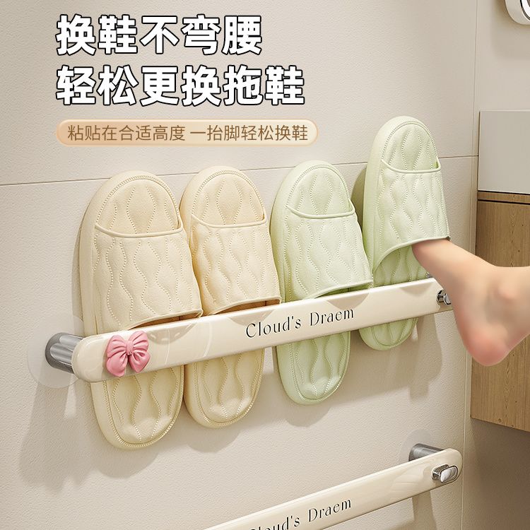 Bathroom Shoe Storage Rack, Draining Slipper Holder, No-Drill Wall-Mounted quantity