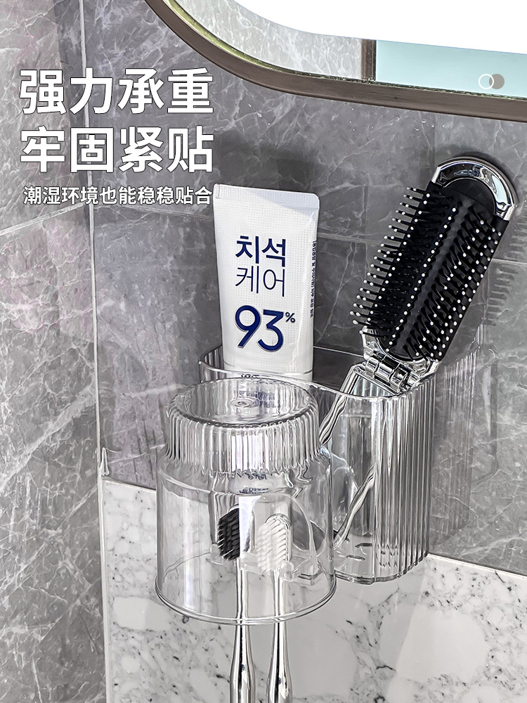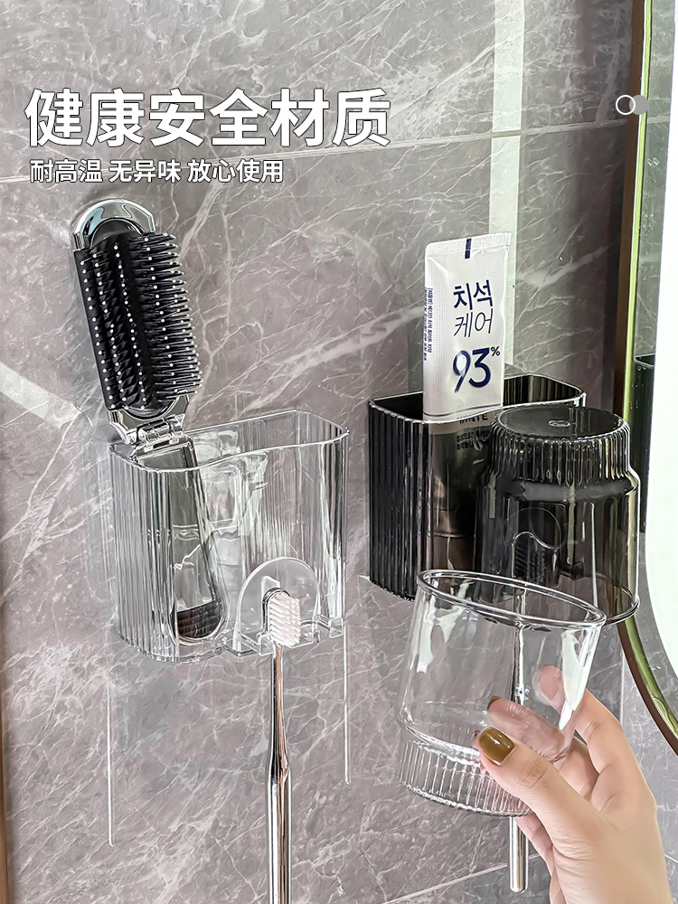 كمية Bathroom Toothbrush Holder, Wall-Mounted No-Drill Toothbrush Organizer with Cup Holder