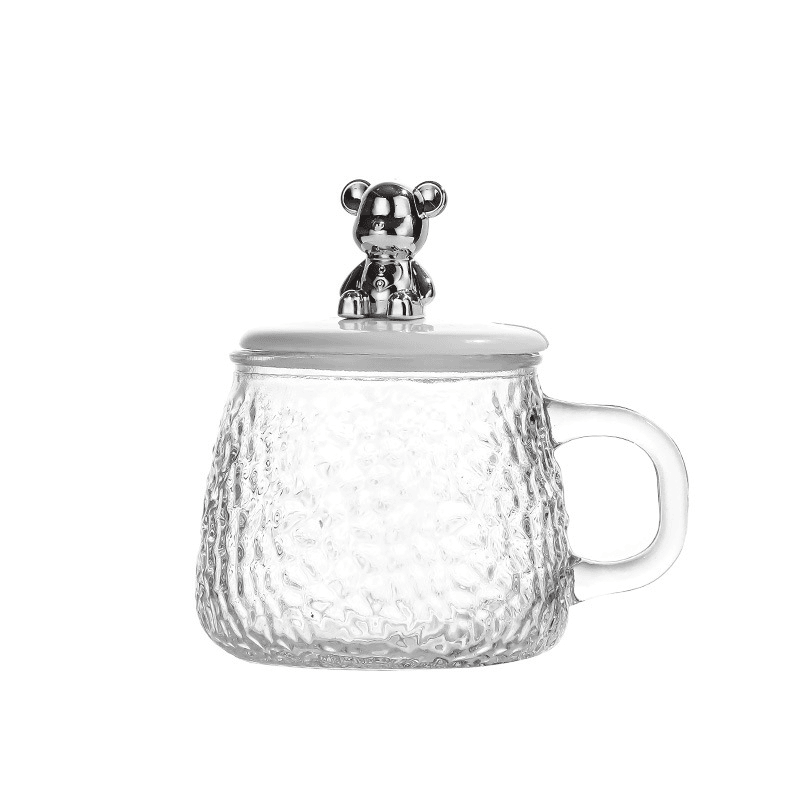 Bear Cup Hammered Glass Water Cup High-Value Student Cup with Lid Tea Brewing Cup Flower Tea Cup Gift Cup quantity