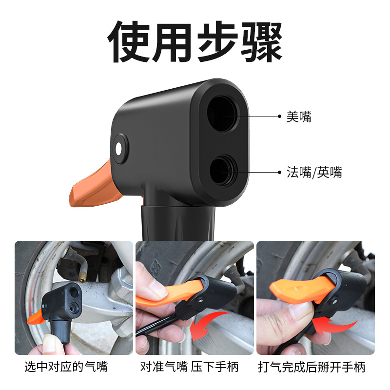 مضخة هواء للدراجات مع محولات لفتحات الهواء