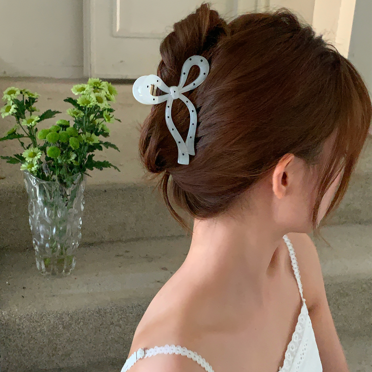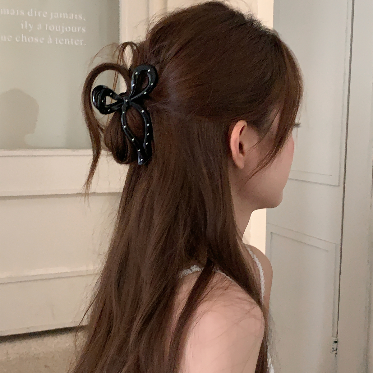 Black and White Polka Dot Bow Hair Clip Elegant Versatile Shark Clip for Hair quantity