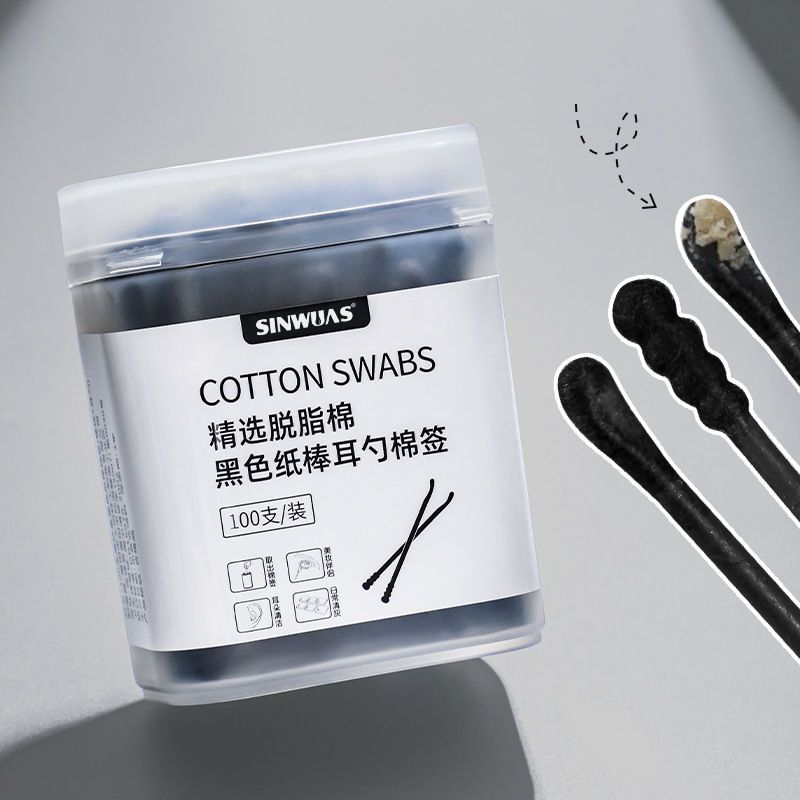 Black Cotton Swabs for Ear Cleaning Disposable Cotton Buds for Adults quantity