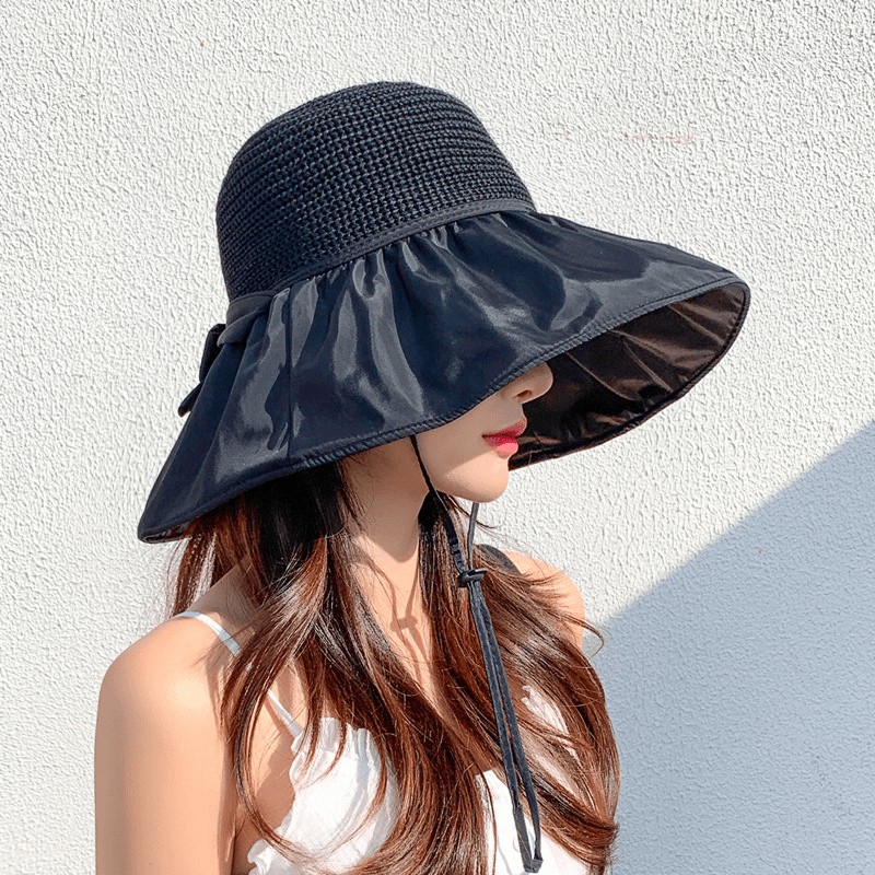قبعة شاطئية من القش للنساء صيفية عصرية لحماية الوجه من الشمس
