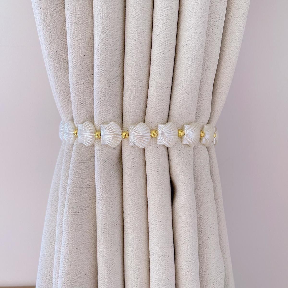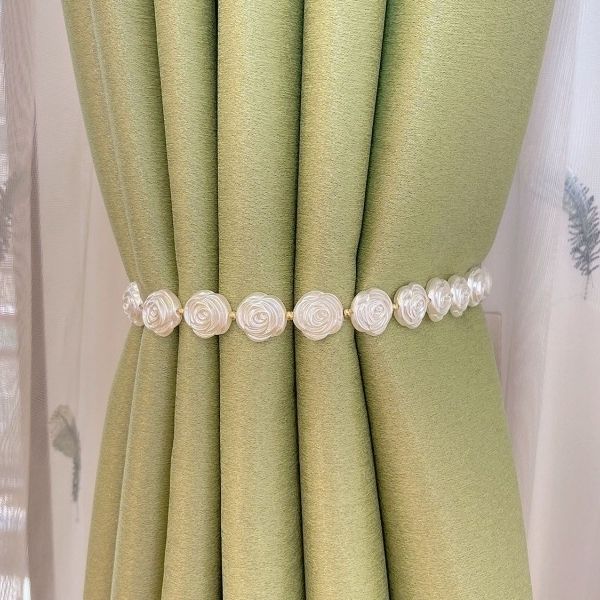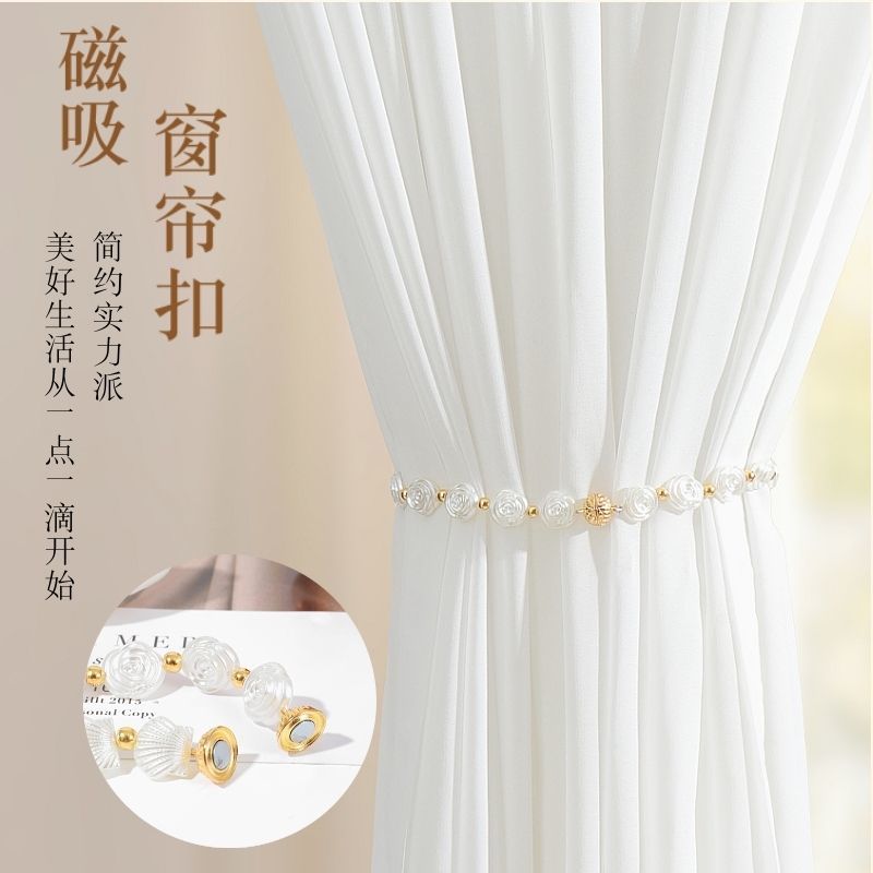 Camellia Light Luxury Magnetic Pearl Curtain Tiebacks, No-Drill Curtain Clips for Living Room quantity