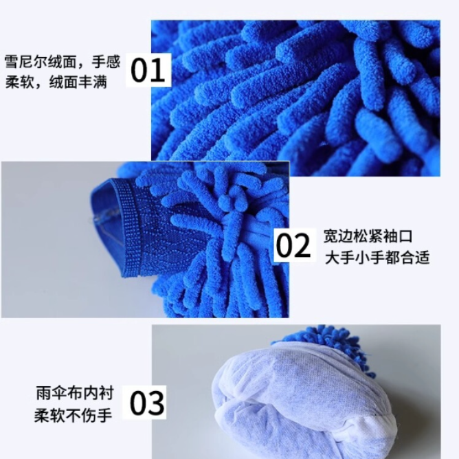 كمية Car Wash Gloves, Chenille, Waterproof, Thick, Car Cleaning Tool