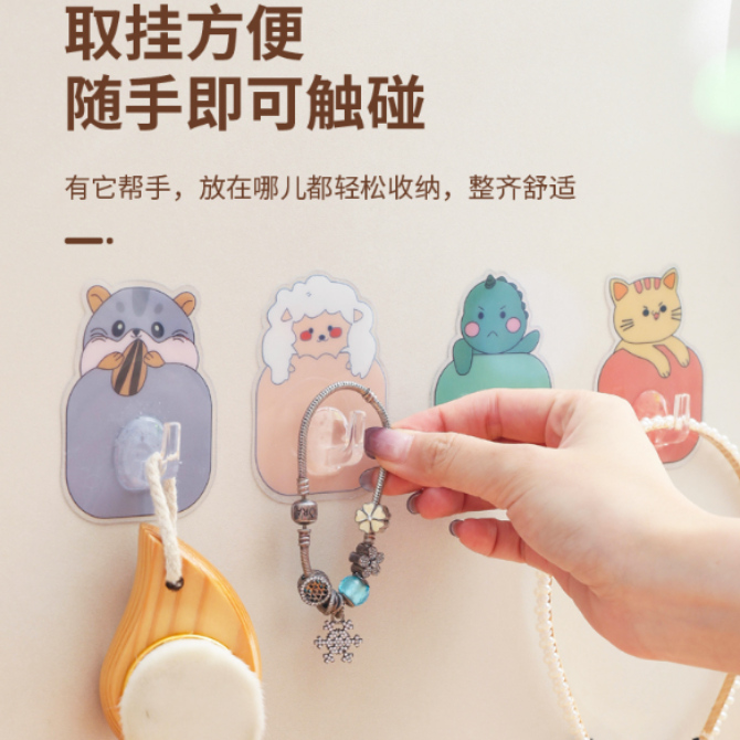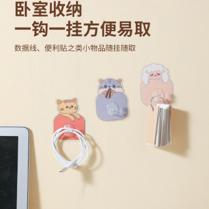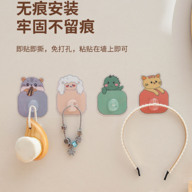 Cartoon Animal Adhesive Hook Strong Adhesive Load-bearing No Trace Dormitory Wall Hook No Drilling Adhesive Hook quantity