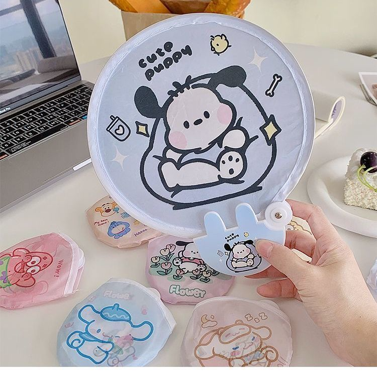 مروحة طيّ قابلة للحمل بتصميم كرتوني، مروحة صغيرة من القماش للطلاب