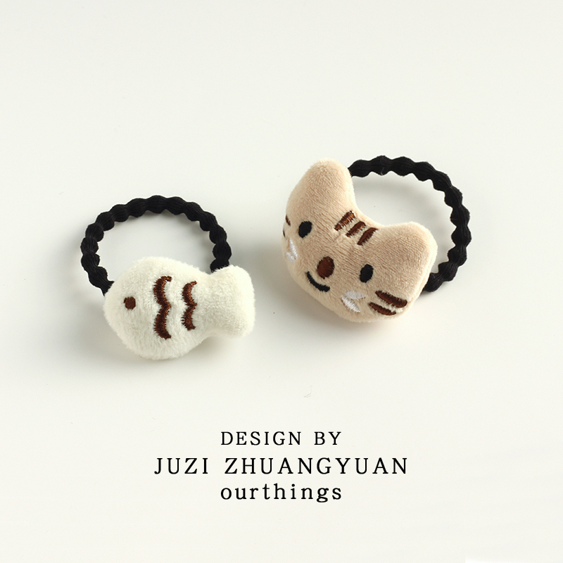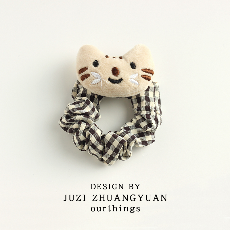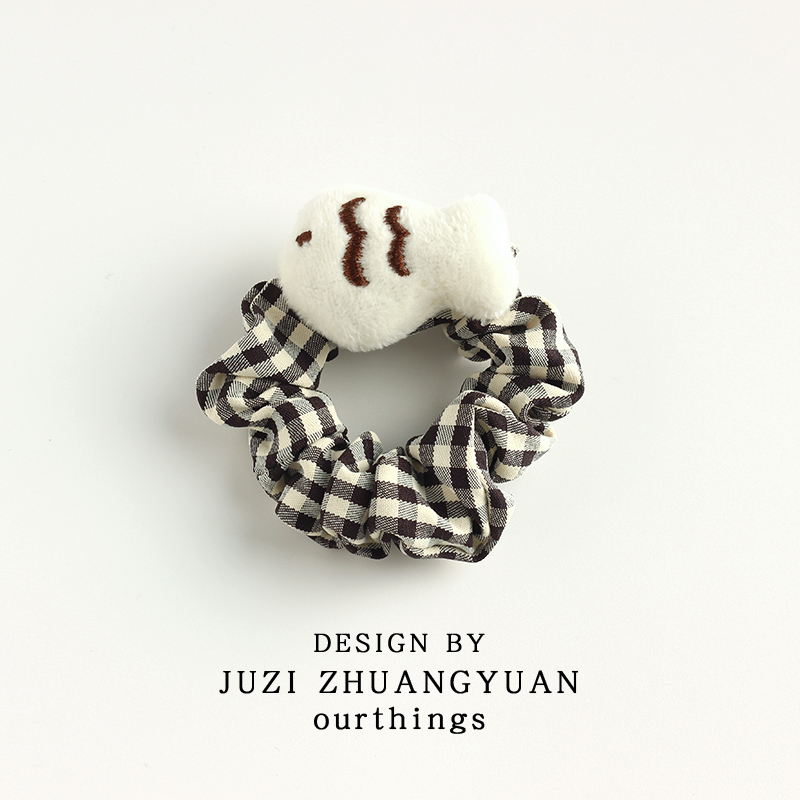 كمية Cat Eating Fish~ Doll Hair Tie Classic Checkered Basic Big Intestine Circle Little Fox Hair Tie Cartoon Cute Hair Rope for Autumn and Winter