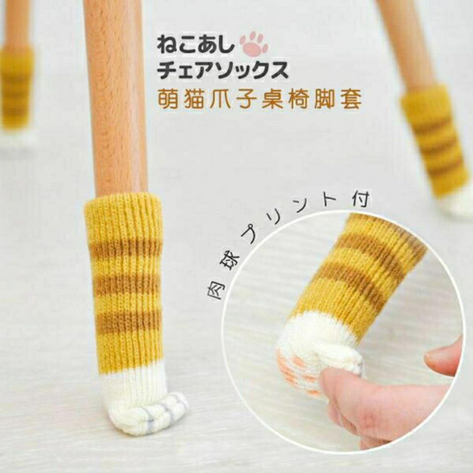 أغطية أرجل الطاولة - قطة بخطوط صفراء [16 قطعة]