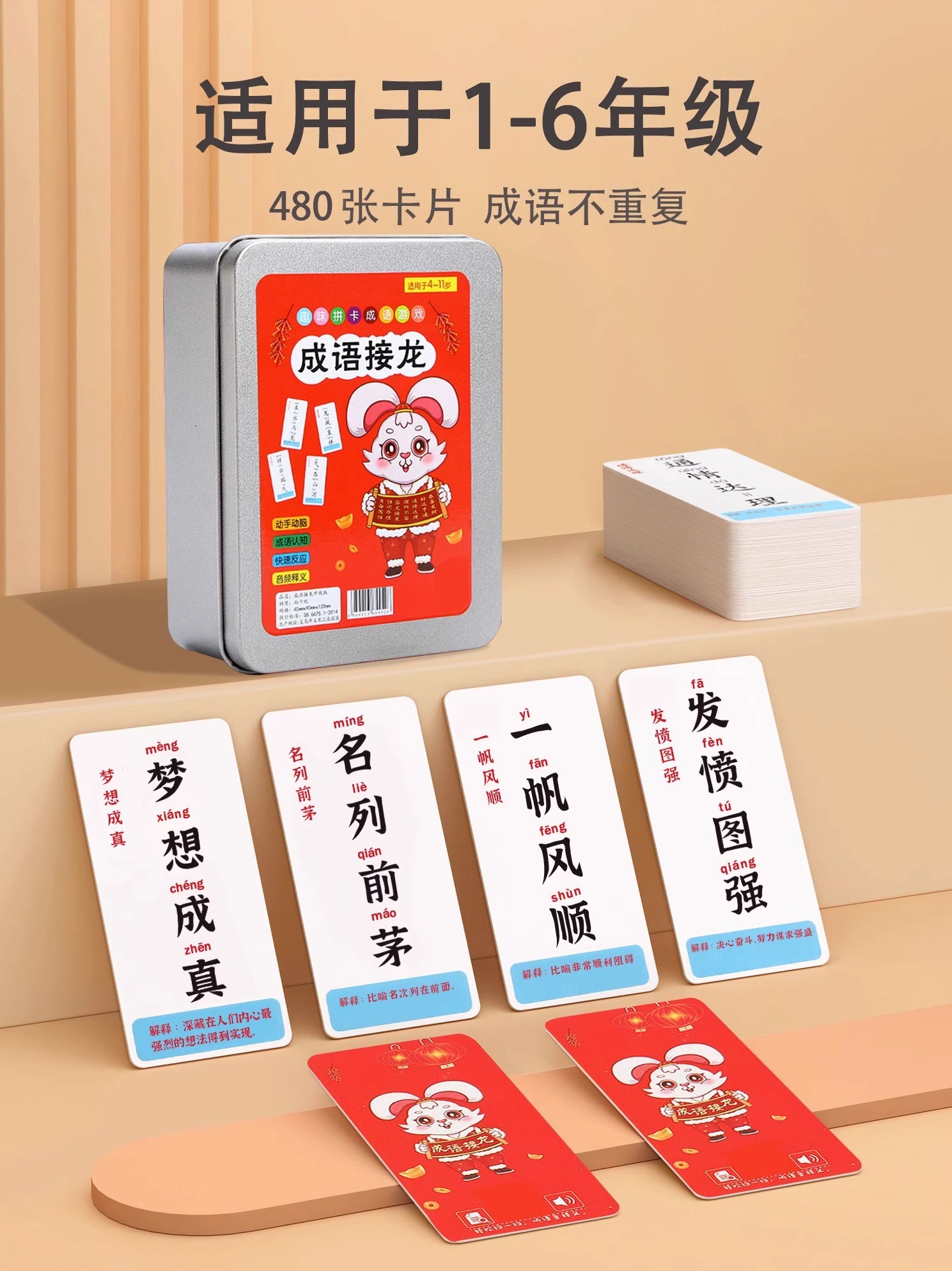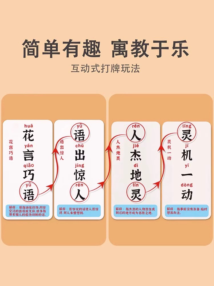 Children's Idiom Solitaire Playing Cards, Educational Parent-Child Fun Card Game, Vocabulary Knowledge Cards for Primary and Secondary School quantity