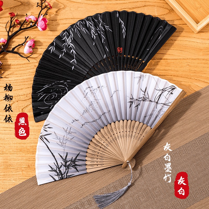 مروحة قابلة للطي على الطراز القديم - غسيل حبر يتساقط من أزهار الكرز - 1 قطعة
