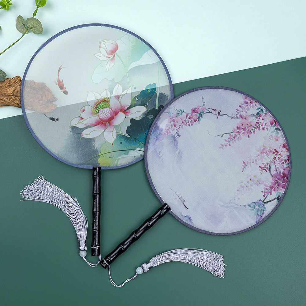 Chinese Style Round Fan Semi-Transparent Round Fan Ancient Style Handmade Women's Hanfu Qipao Dance Fan Children's Classical Fan quantity