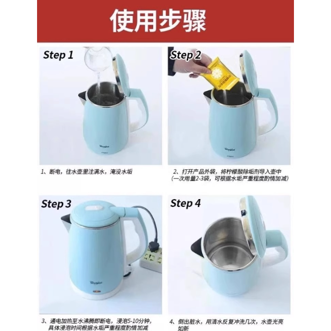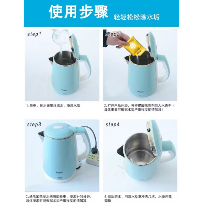 كمية Citric Acid Descaling Agent for Household Kettles Electric Water Heaters Water Dispensers Tea Stains Cleaner