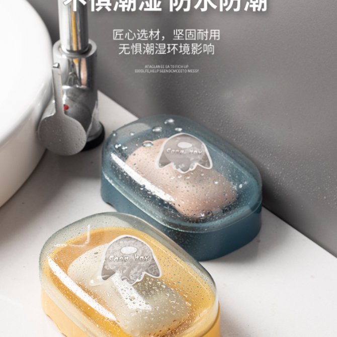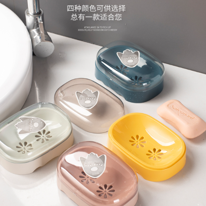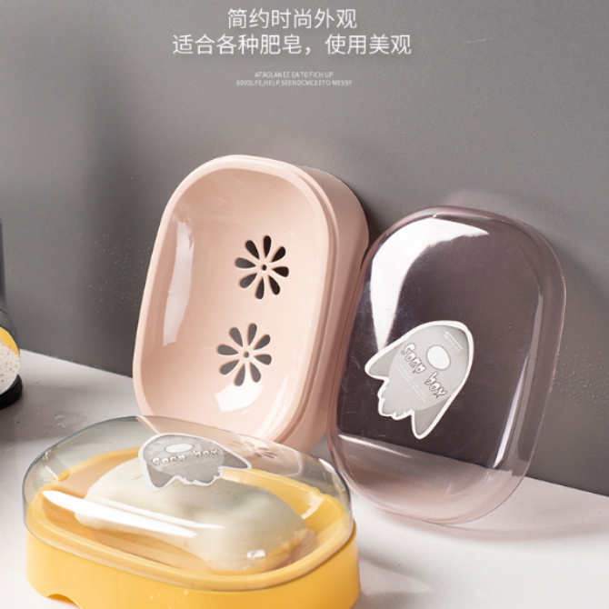 كمية Covered Draining Soap Box Creative Portable Student Dormitory Bathroom Household Simple Cartoon Soap Box