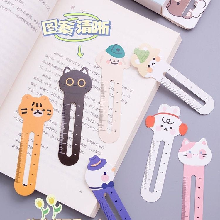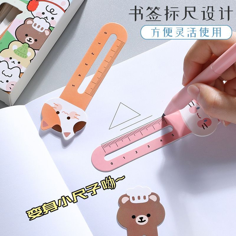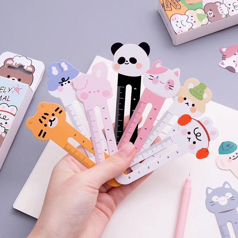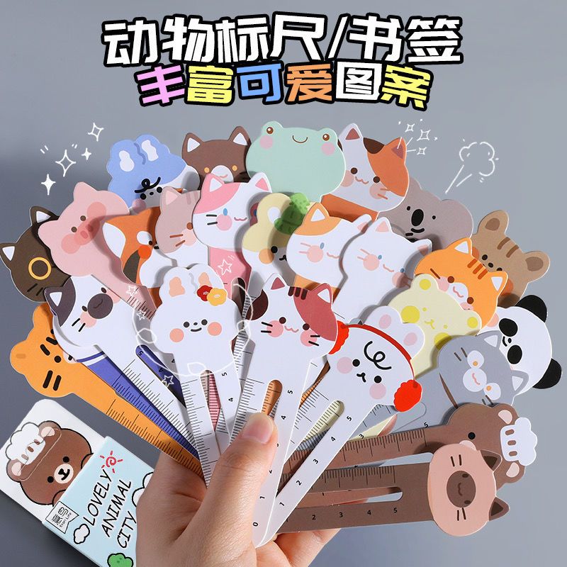 كمية Cute Animal Ruler Bookmarks for Children, Creative Cartoon Paper Clips