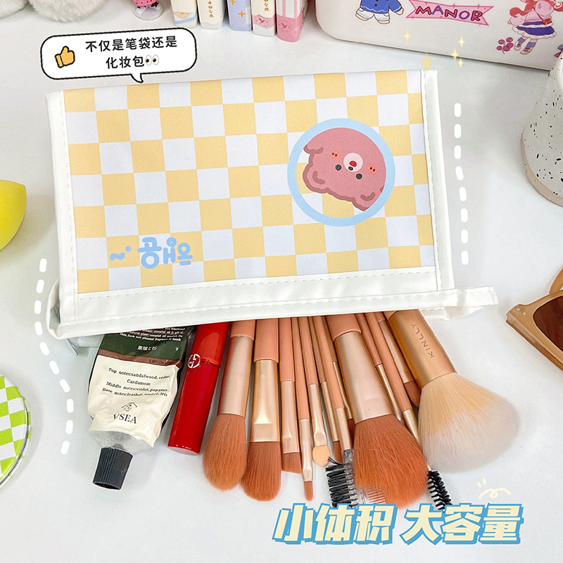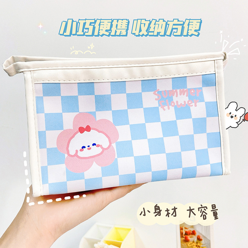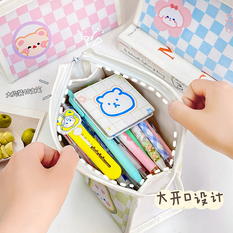 Cute Large Capacity Pencil Case Stationery Box Japanese Style High-Value Checkered Stationery Bag Pencil Box Student Desktop Storage Bag quantity