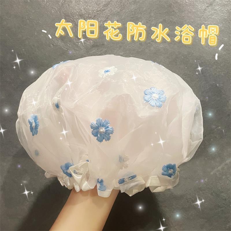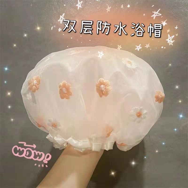 كمية Double-layer Waterproof Shower Cap for Women, Thickened Dustproof Head Cover