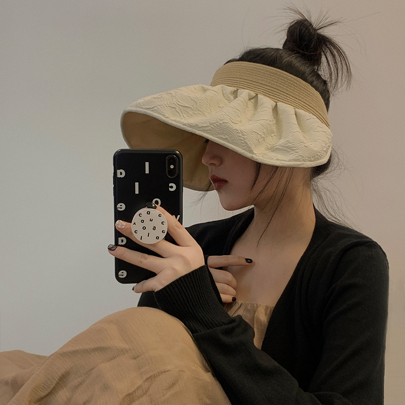 كمية Double-Sided Sun Hat for Women Summer White Foldable Sun Protection Hat