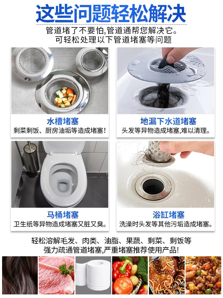 كمية Drain Cleaner, Strong Odor Eliminator, Powerful for Clogged Drains