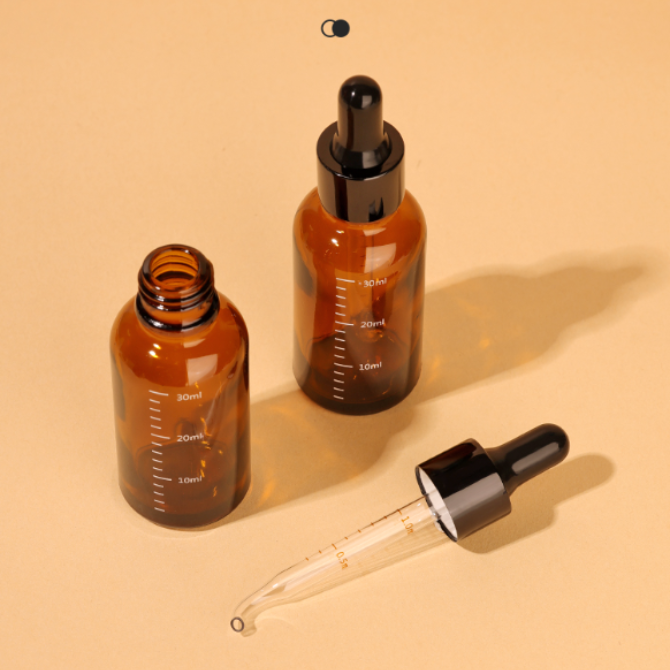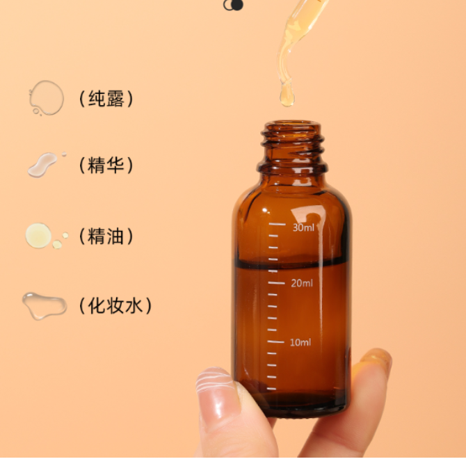 كمية Dropper Essential Oil Measuring Bottle Glass Brown Light-Proof Essence High-End Empty Bottle with Rubber Head