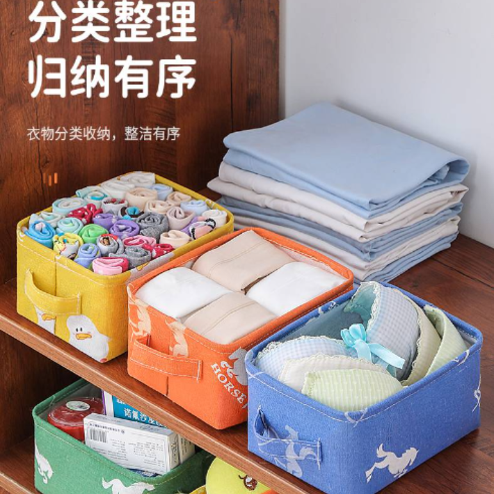 Fabric Cotton Linen Storage Basket for Underwear and Socks, Foldable Waterproof Dustproof Storage Box for Home and Dorm quantity