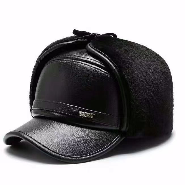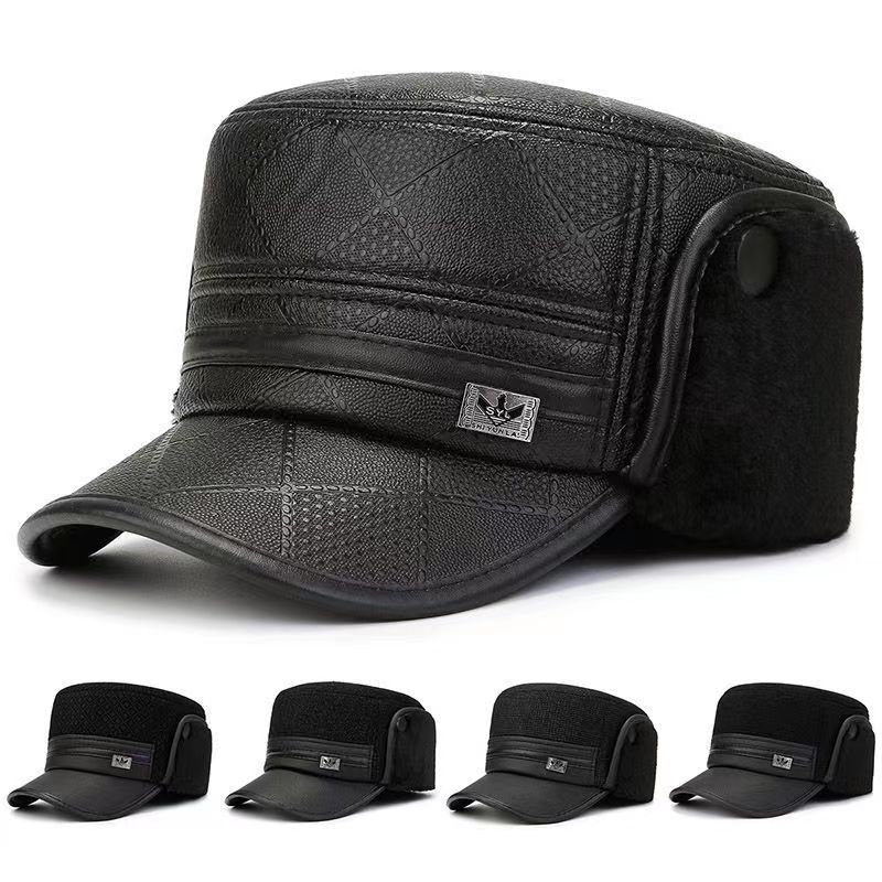 كمية Fleece Thick Warm Hat for Middle-Aged and Elderly Men Winter Dad Flat Cap Grandpa Leather Hat Elderly Ear Protection Duck Tongue Hat