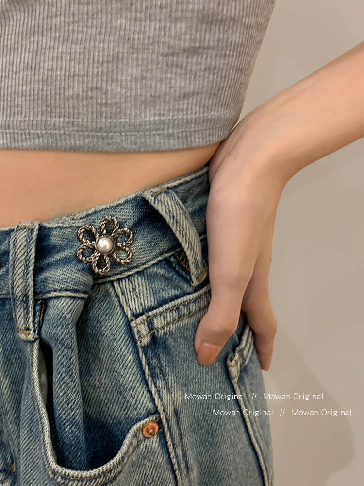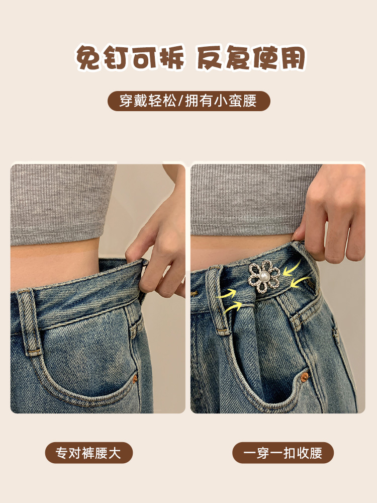 كمية Flower Waist Tightening Artifact Jeans Skirt Waist Tightening Button No-Drill Adjustable Fixed Safety Pin