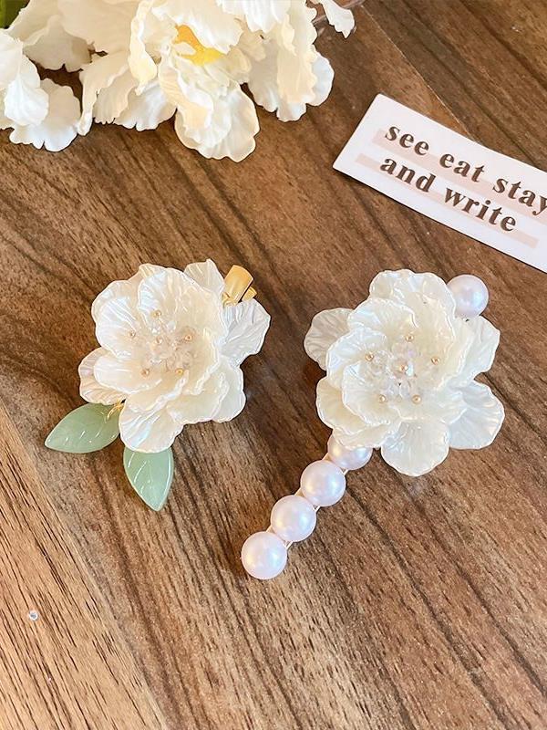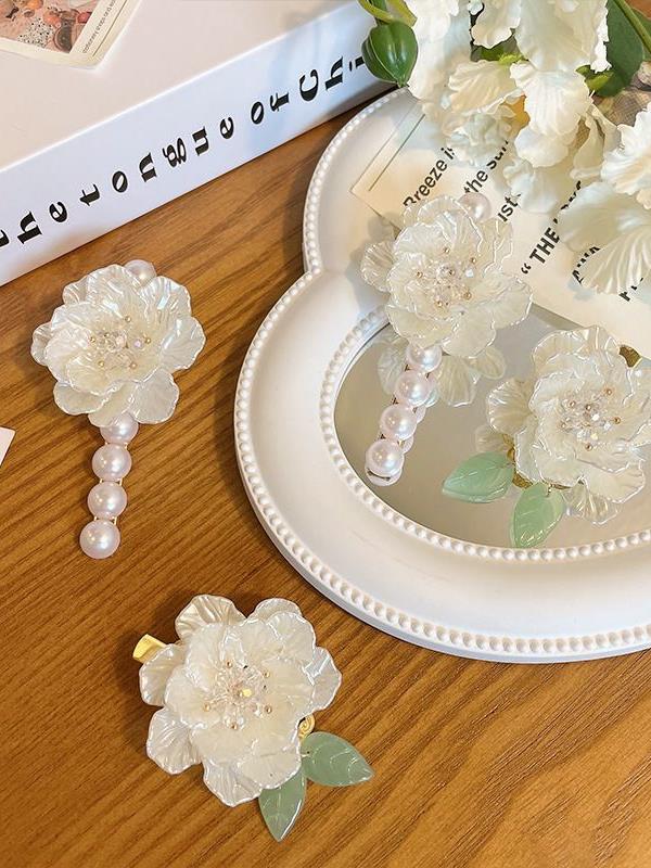 French Romantic Super Fairy White Tea Flower Hair Clip Hairpin Flower Hair Clip Retro Side Bang Clip High-End Quality Clip quantity