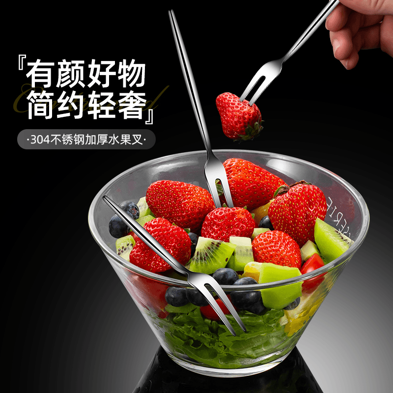 German Children's Fruit Fork 304 Stainless Steel Thickened Non-Damaging Baby Home Luxury Fruit Fork Spoon quantity