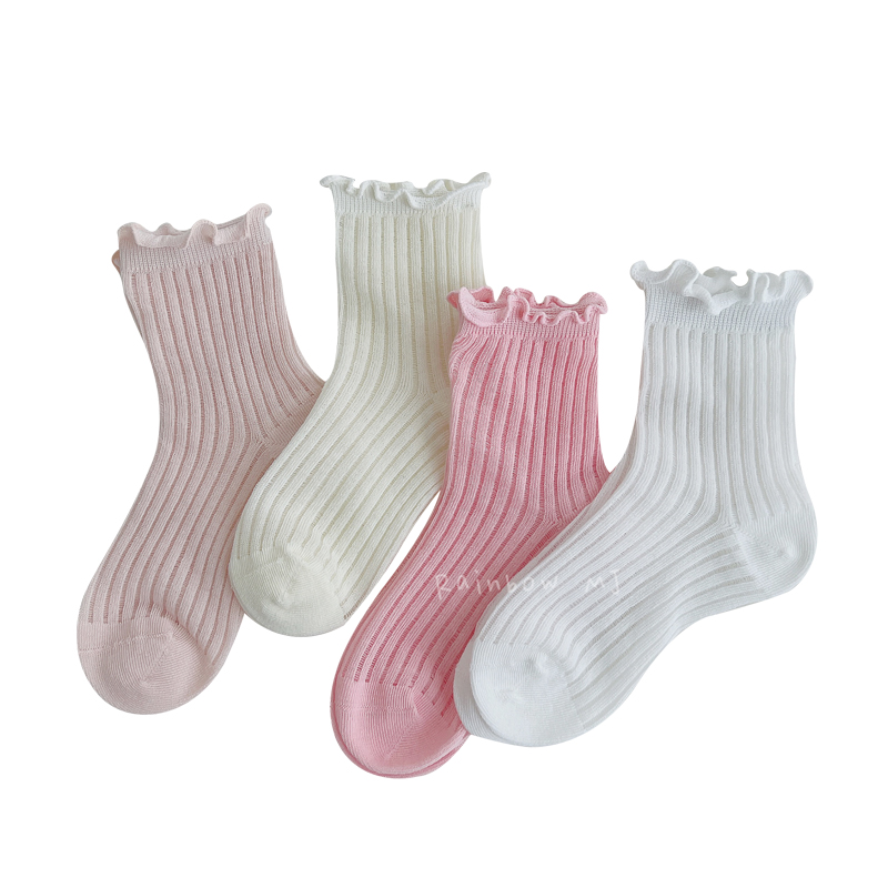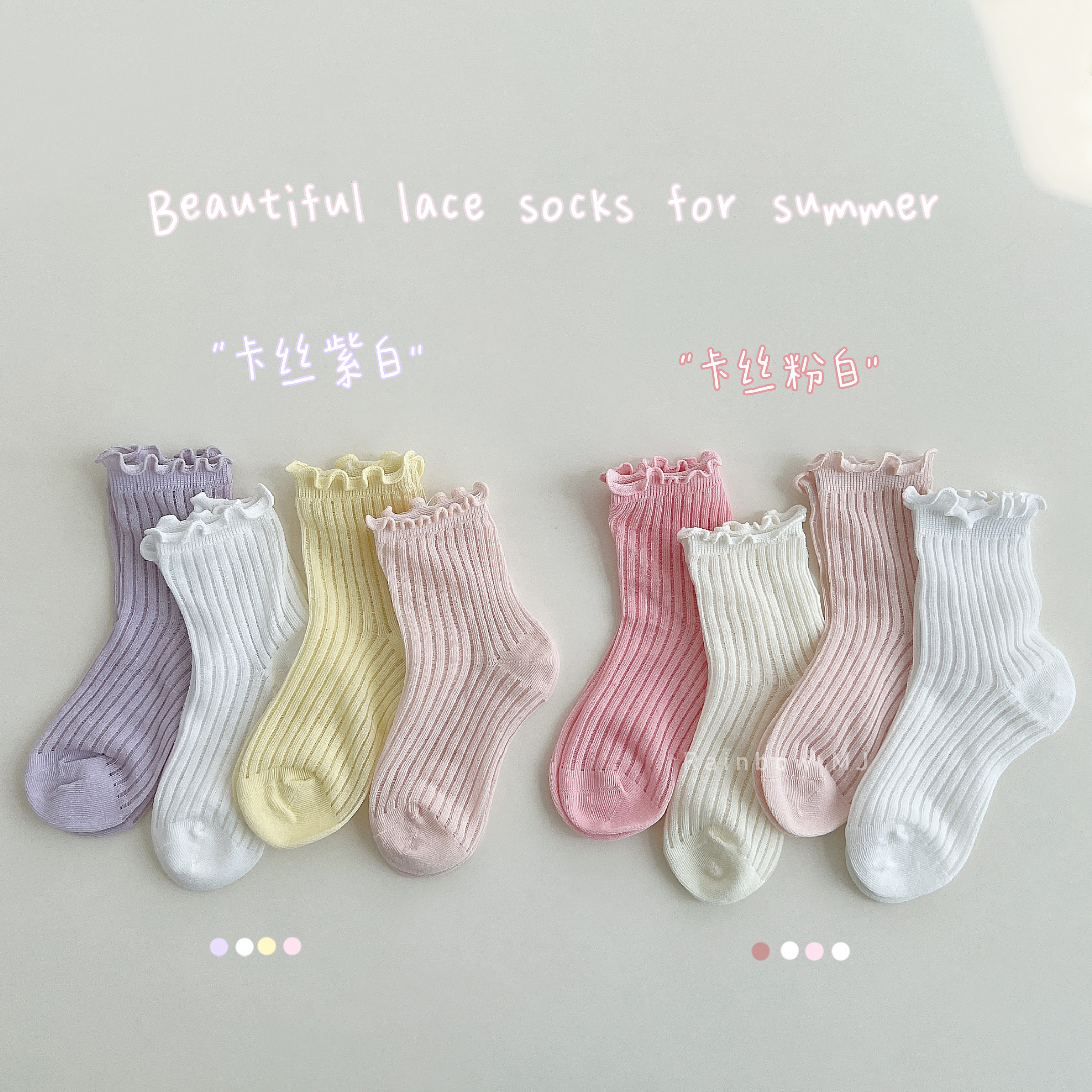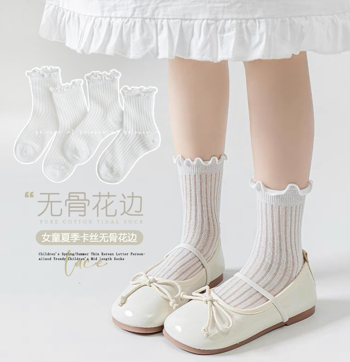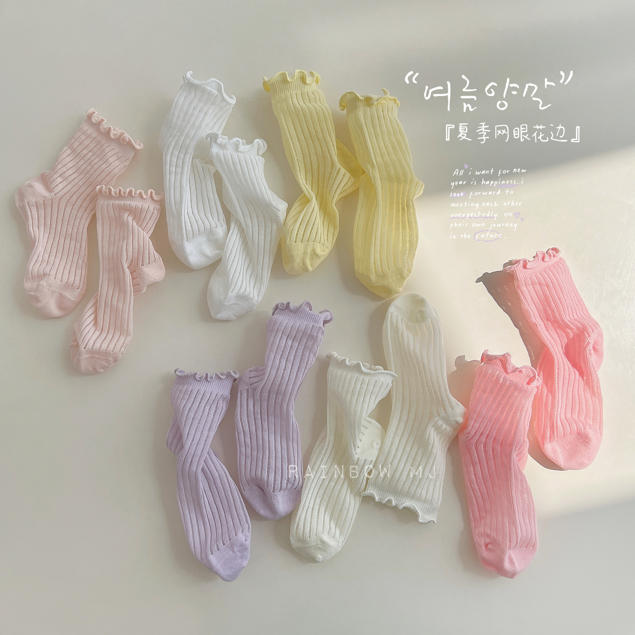 كمية Girls' Socks Summer Thin No-Bone Princess Lace Socks Baby Girl Summer Thin Cotton Mesh Mid-Calf Socks