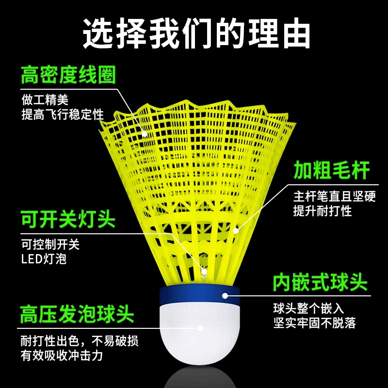 Glow-in-the-Dark Nylon Ball with Light Durable Night Use Fluorescent Shining Ball Light-Up Badminton quantity