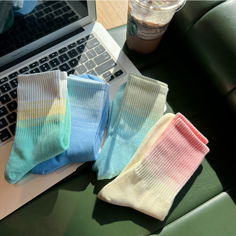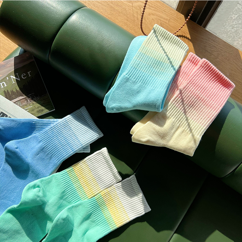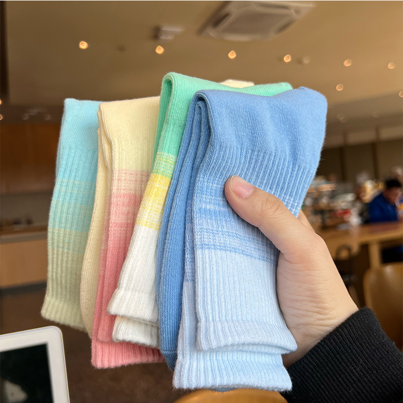 كمية Gradient Color Socks Women's Summer Mid-tube Socks Ins Trendy Summer Couple Breathable Sweat-absorbing Sports Long Socks