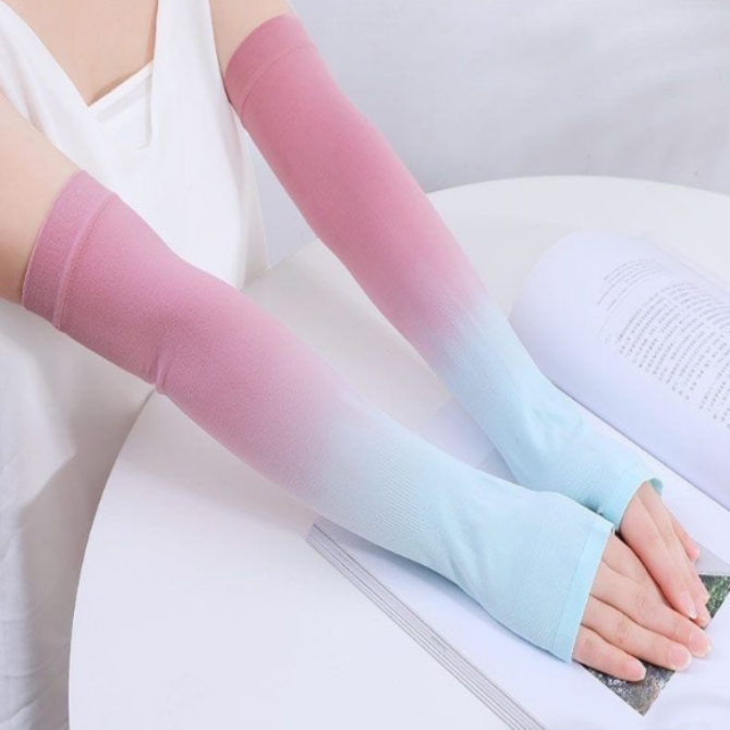 كمية Gradient Color Sun Protection Arm Sleeves for Outdoor Cycling, Ice Silk Arm Covers