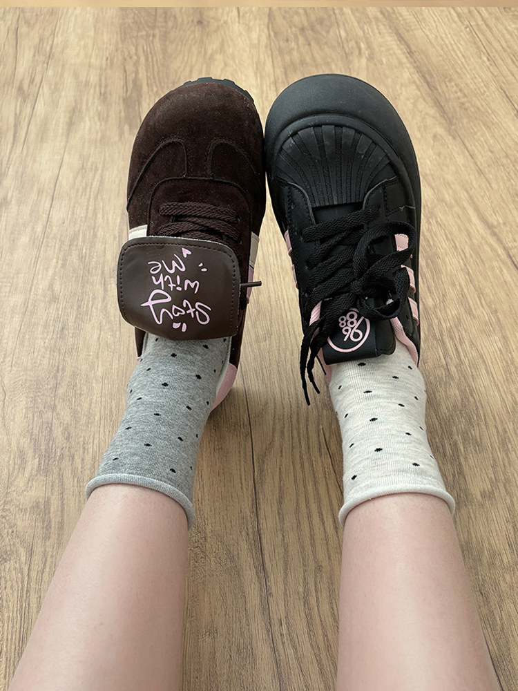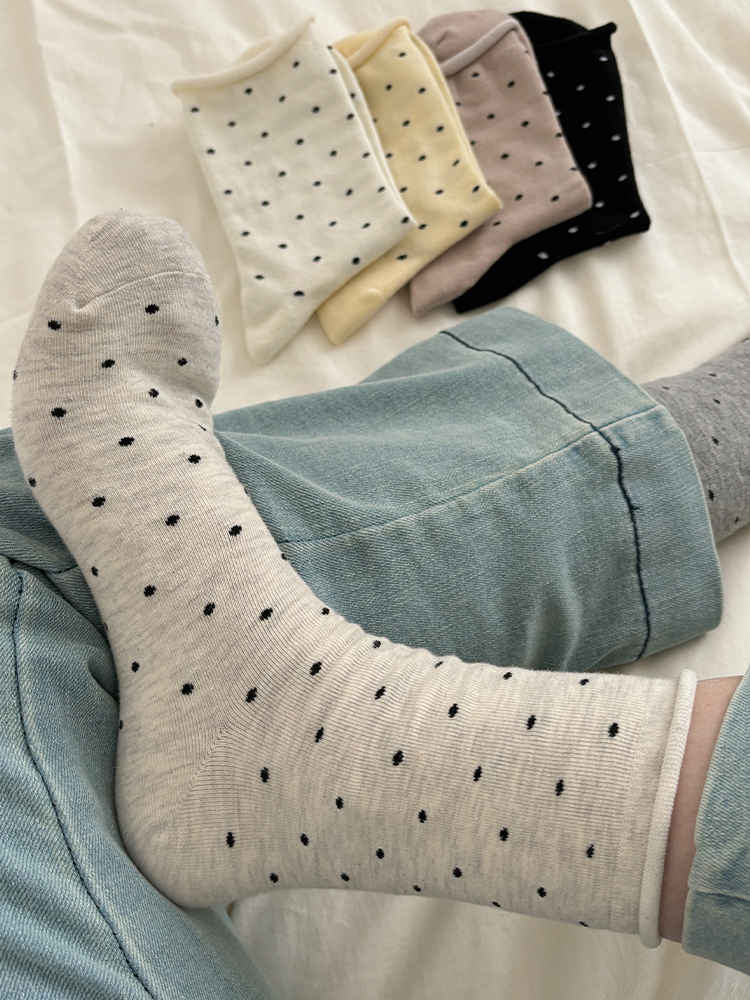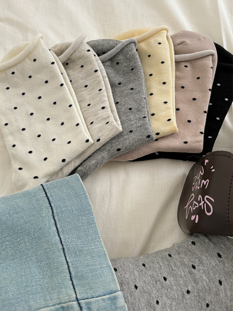 كمية Gray Polka Dot Socks Women's Mid-Calf Socks INS Trend Pure Cotton Spring Autumn Student Cuffed Socks Summer Thin Long Socks