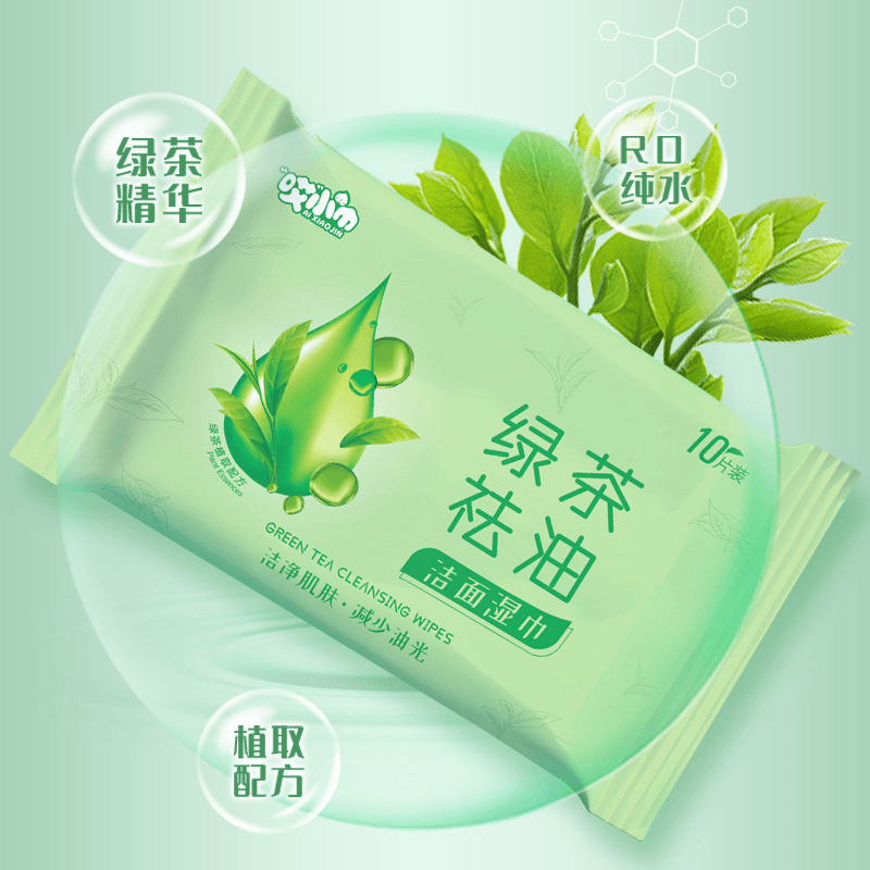 Green Tea Oil-Removing Face Wipes for Students Military Training Portable Small Pack quantity