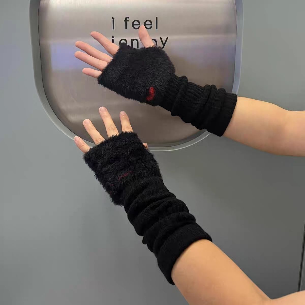 كمية Half-Finger Gloves for Women Winter Fingerless Cute Arm Warmers Knitted Long Sleeve Warmers