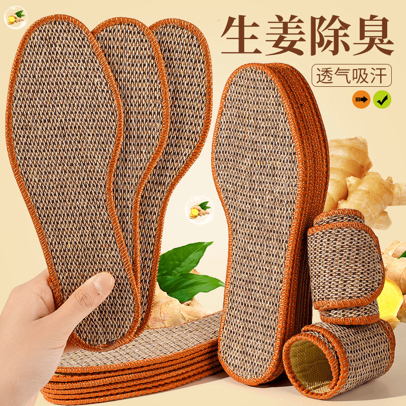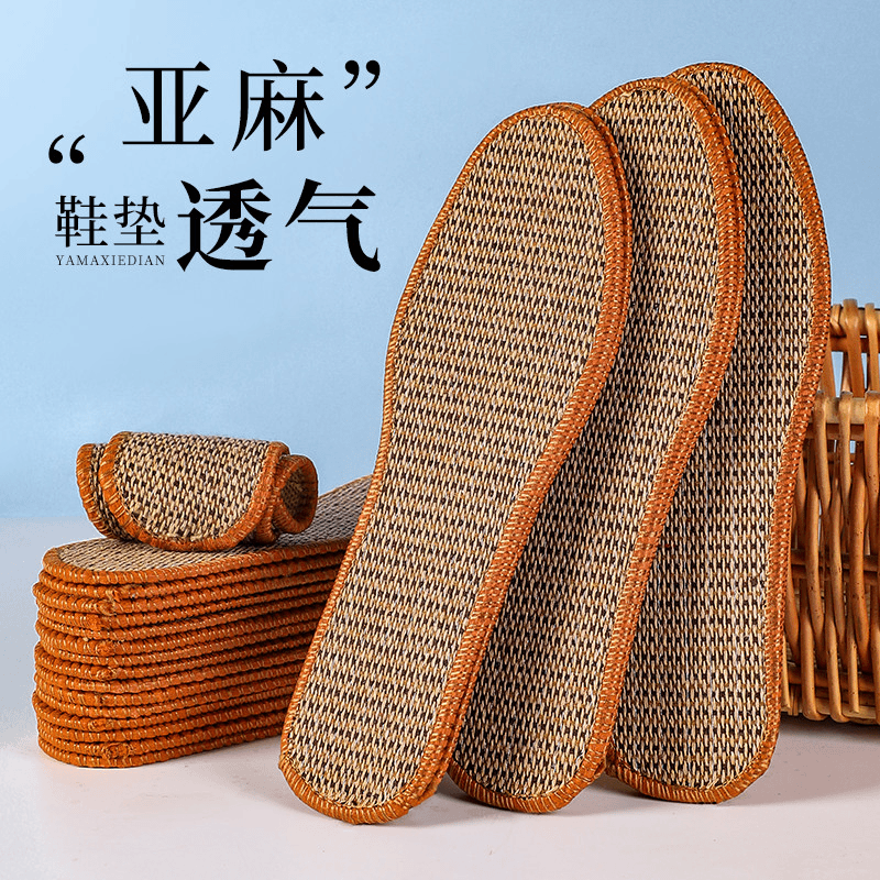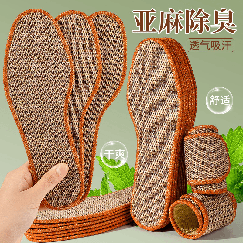 كمية Handmade Linen Deodorizing Insoles for Women Summer Sweat-Absorbing Odor-Resistant Breathable Soft Bottom Comfortable for Men's Sweaty Feet