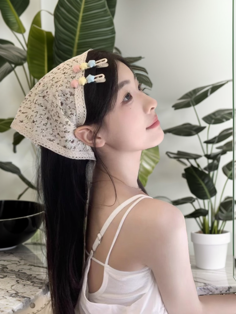 كمية Headscarf for Women Summer Rural Style Floral Lace Triangle Scarf Beach Vacation Hair Band Photo Headwear