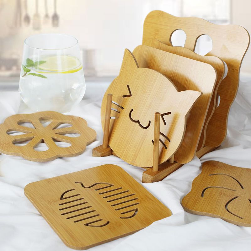 Heat Insulation Dining Mat Thickened Anti-Scald Wooden Dining Table Mat Creative Cute Cartoon Non-Slip Clay Pot Mat Plate Mat Cup Mat quantity