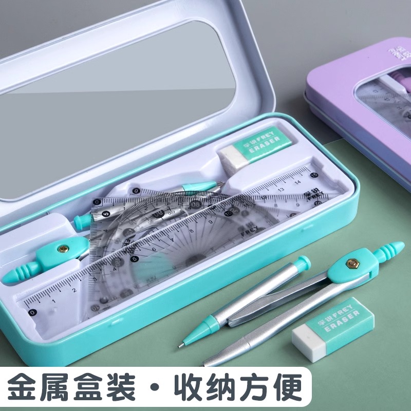 كمية High-Quality 7-Piece Set, Compass, Protractor, Triangle Ruler, Multi-functional Set for Middle School and Primary School Exams
