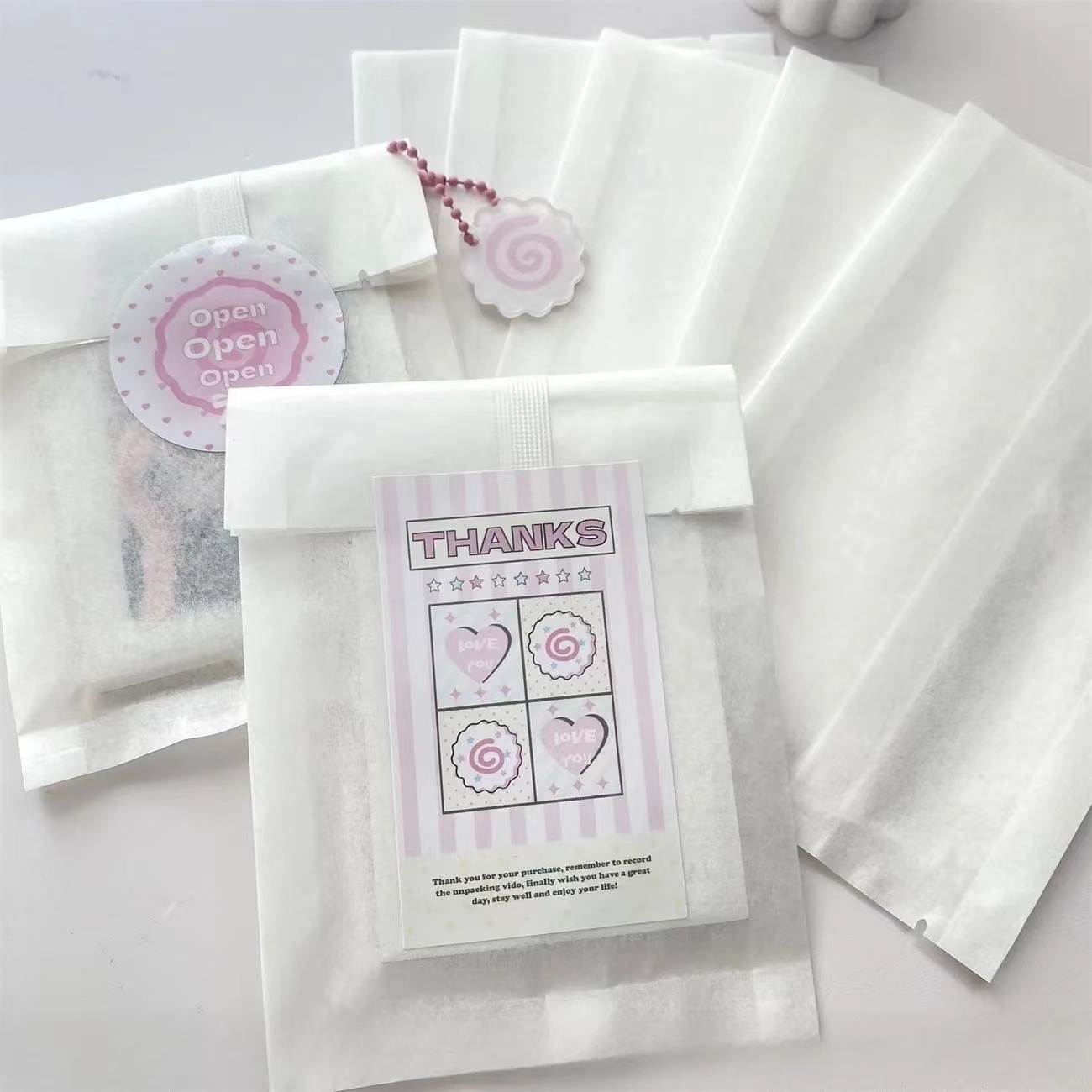 كمية High-value Ins White Cotton Paper Bag Semi-transparent Frosted Packaging Packing Idol Small Card Self-sealing Bag Portable Thickened